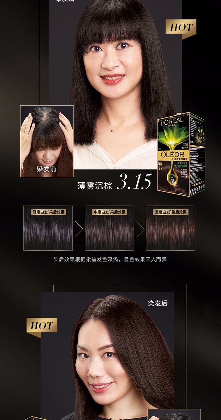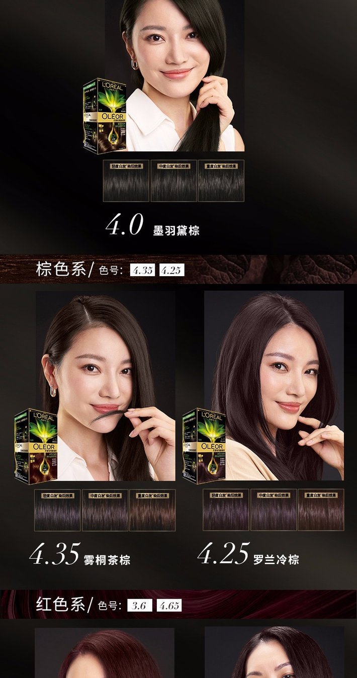 欧莱雅精油染发剂4.35 雾桐茶棕