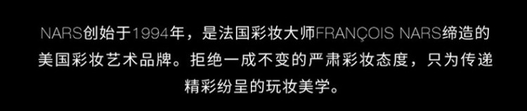 妆容,尽在掌握。全新艺术化妆刷系列,让妆容时刻迷人。精致细腻,魅力表现。每一把都别具匠心,诠释了Francois Nars先生标志性的彩妆艺术。全系化妆刷均由柔韧的合成纤维打造而成,便于清洁护理,是敏感肌肤的理想之选。艺术魅力,掌握在您的手中。