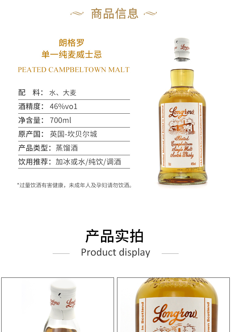 Longrow Peated 朗格罗单一纯麦威士忌 泥煤威士忌 700ml