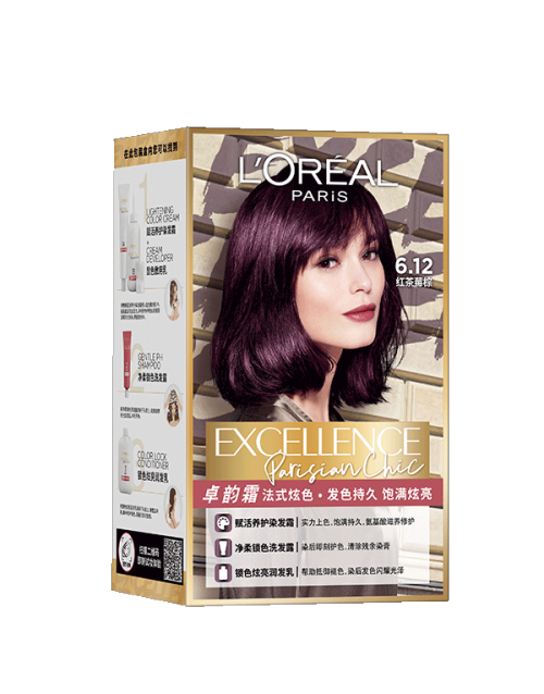欧莱雅时尚染发剂红茶莓棕6.12 172ml/盒