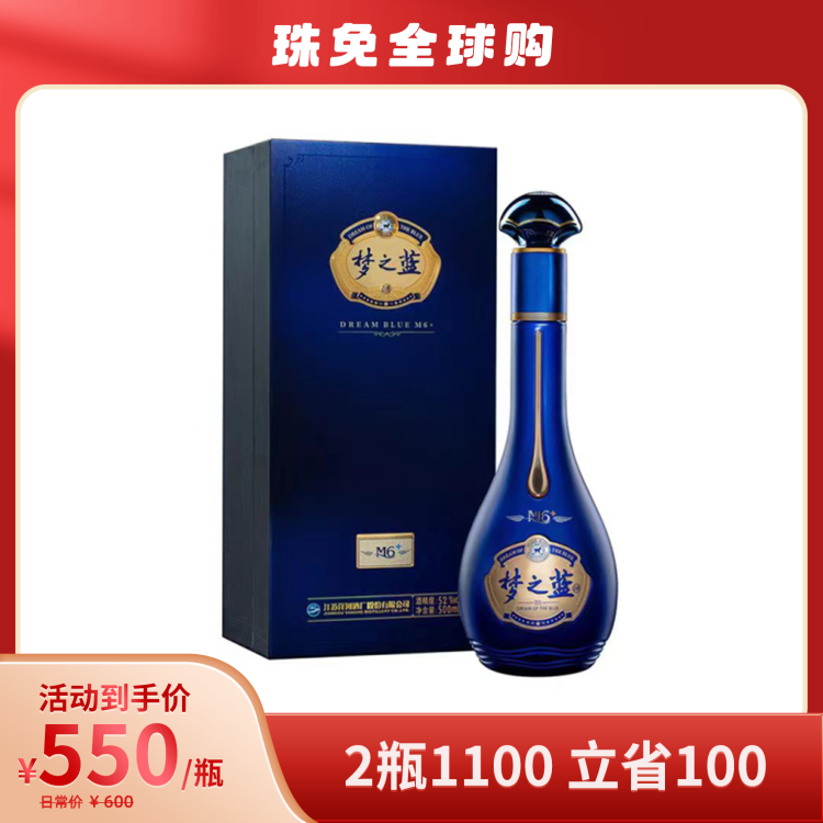 洋河52度梦之蓝M6+浓香型白酒500ml【出口版】 500ml/瓶