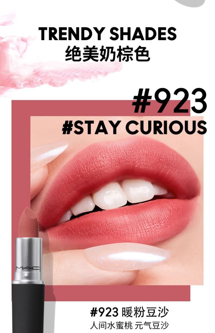 MAC魅可丝缎柔雾唇膏#923 STAY CURIOUS 暖粉豆沙3g 3g/支