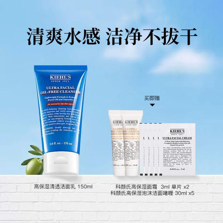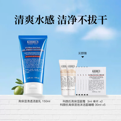 科颜氏高保湿清透洁面乳 150ml+科颜氏高保湿面霜 3ml *5片+科颜氏高保湿泡沫洁面啫喱 30ml*2
