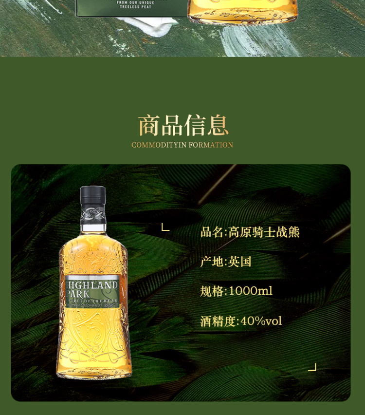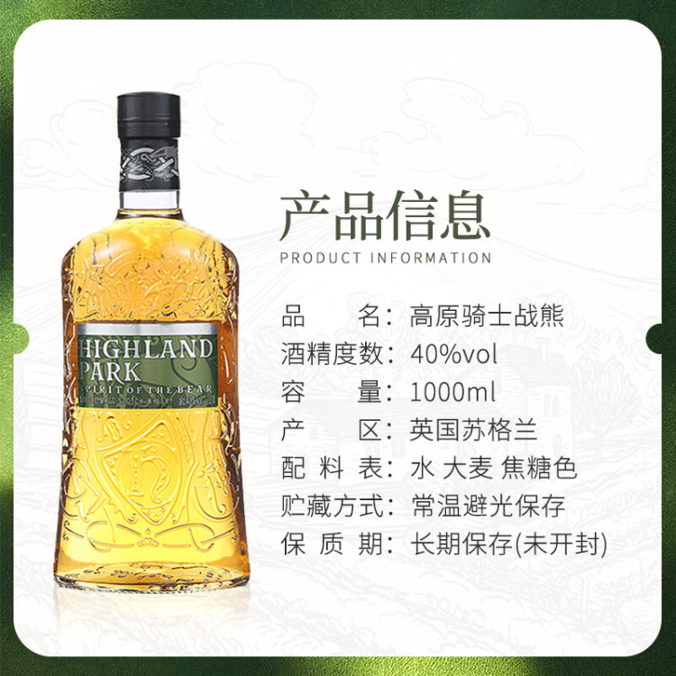 高原骑士战熊单一麦芽威士忌酒1L(40%) 1000ml/瓶