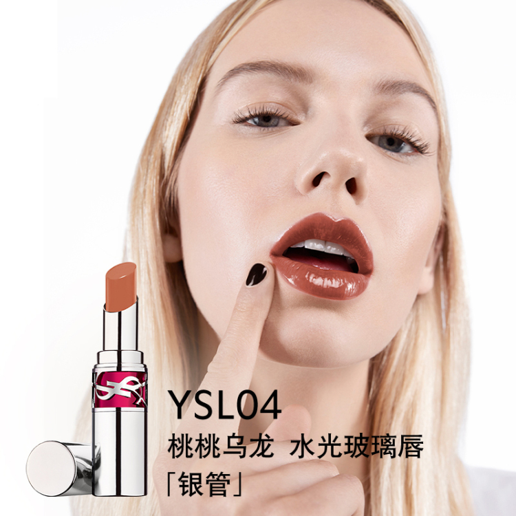 YSL圣罗兰莹亮润彩银管唇膏 #4 桃桃乌龙 水光玻璃唇 3.2G