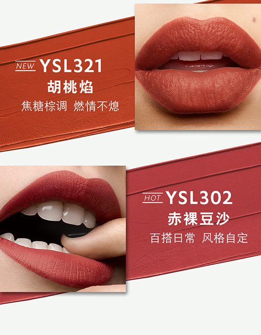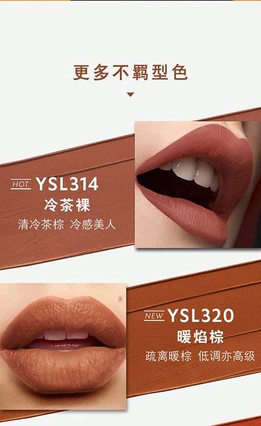 YSL圣罗兰小黑条细管丝绒纯口红 #307 赤裸柚红 2G