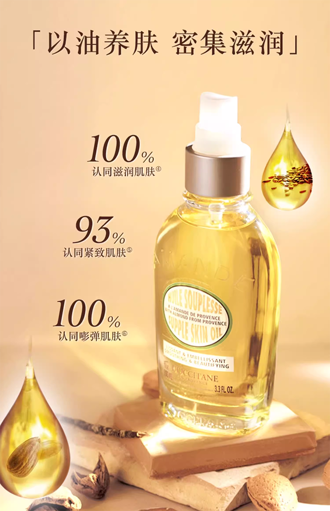 L'OCCITANE欧舒丹甜扁桃紧致美肤油100ml滋润杏仁美肤油
