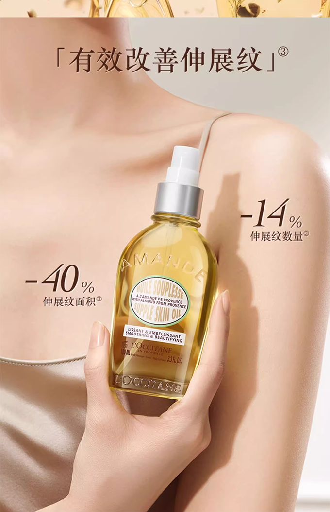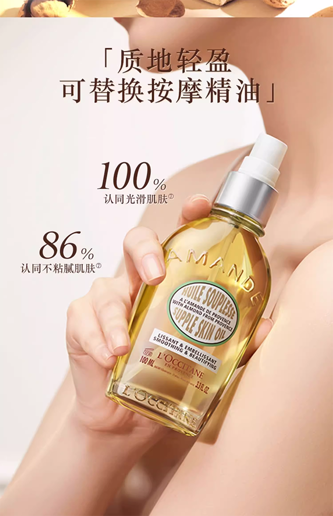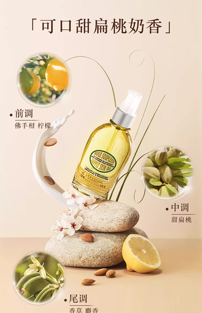 欧舒丹甜扁桃紧致美肤油保湿留香抗皱男女士按摩油