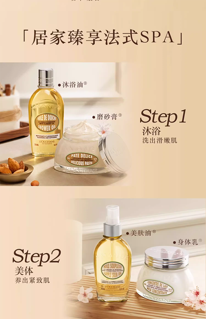 L'OCCITANE欧舒丹甜扁桃杏仁沐浴露沐浴油 美体乳润肤霜 紧致紧肤美肤油