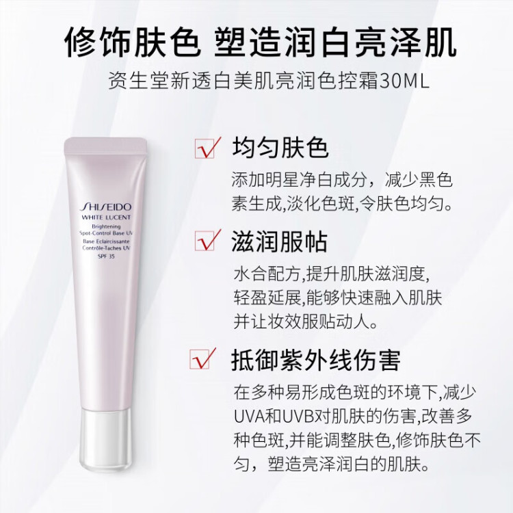 资生堂新透白美肌亮润色控隔离霜(象牙色)30ML 适合自然肤色