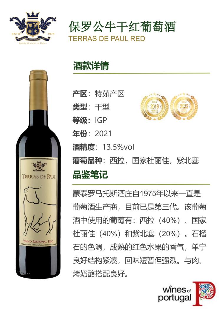 保罗公牛2021年干红葡萄酒750ml(13.5%) 750ml/瓶