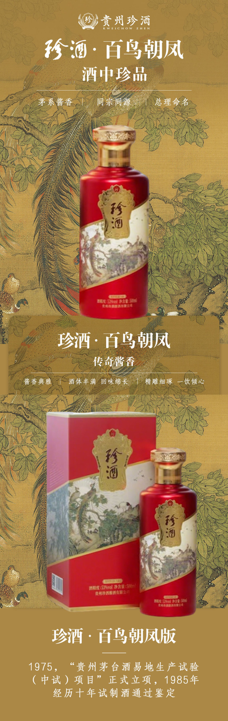 贵州珍酒百鸟朝凤版酱香型白酒500ml(53%)