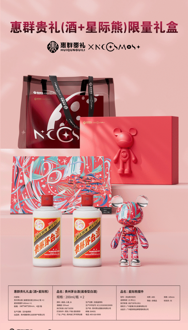 惠群贵礼茅台星际熊限量礼盒(飞天茅台200ml*2瓶+星际熊限量手办145mm*1个)