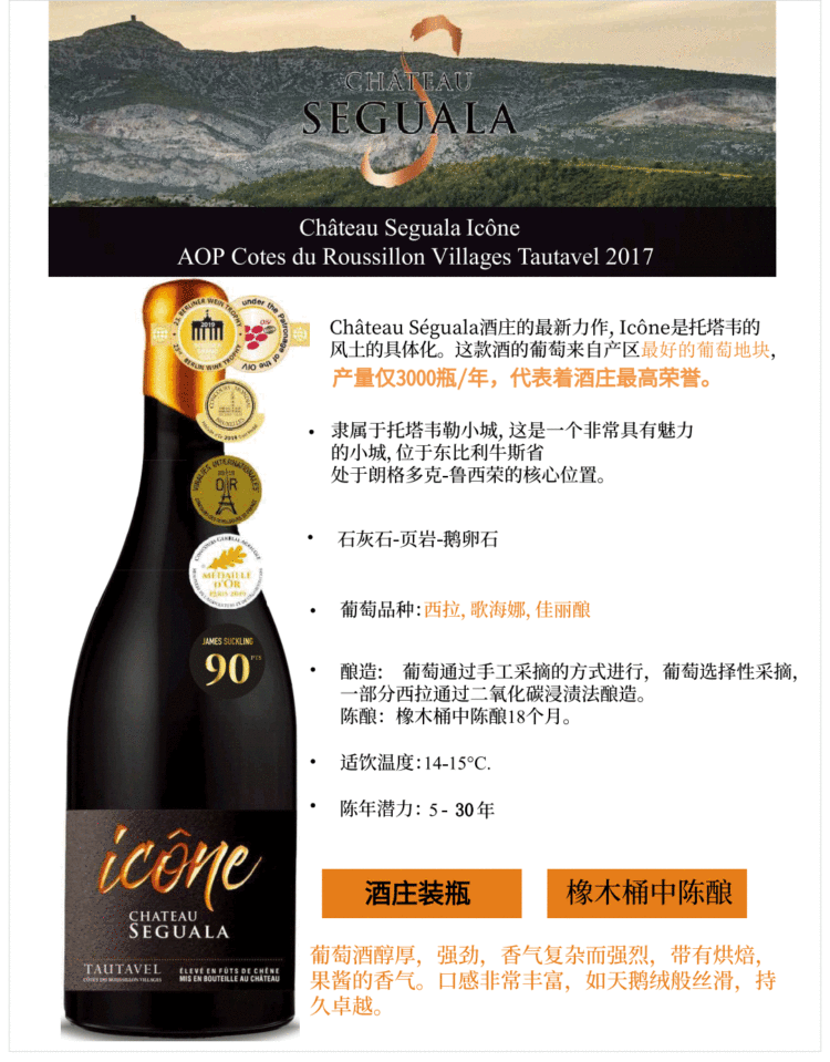 法国荣耀瑟古拉城堡老滕干红葡萄酒750ml