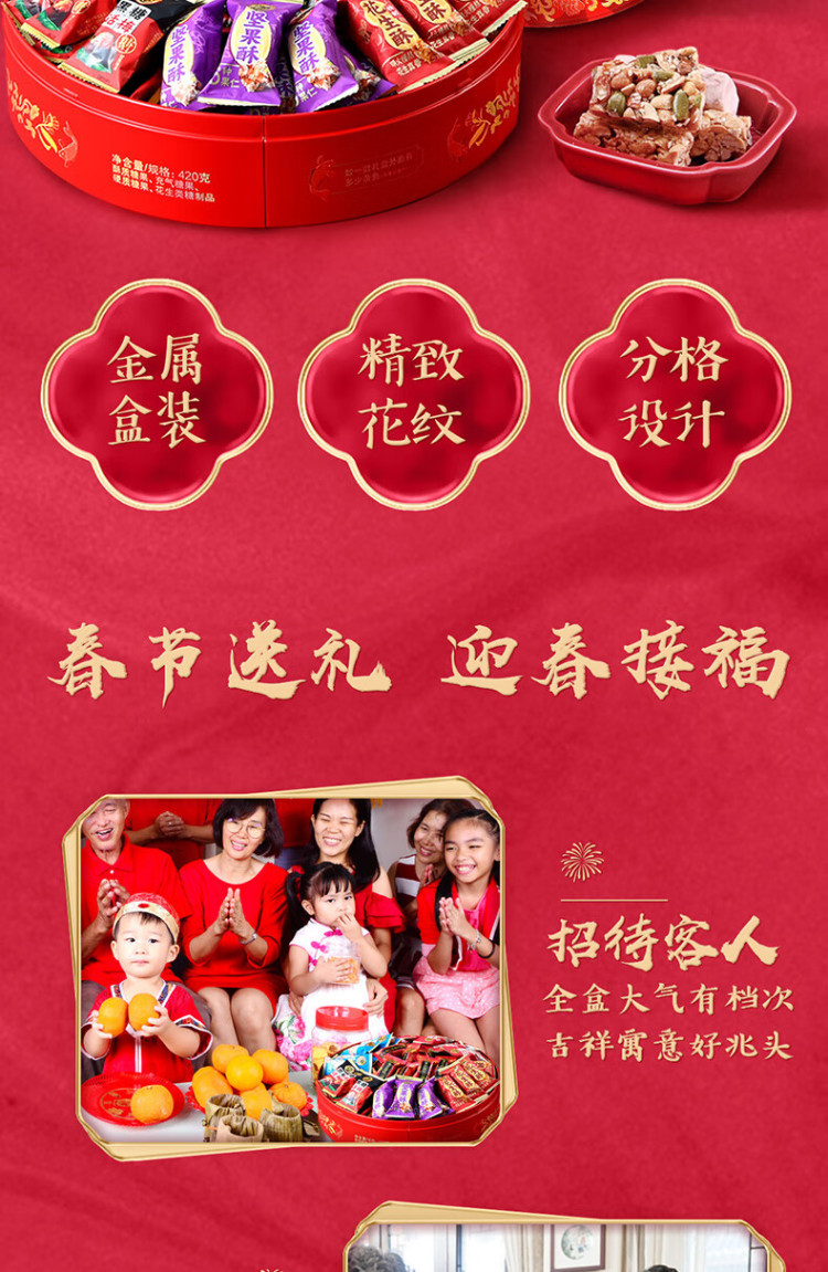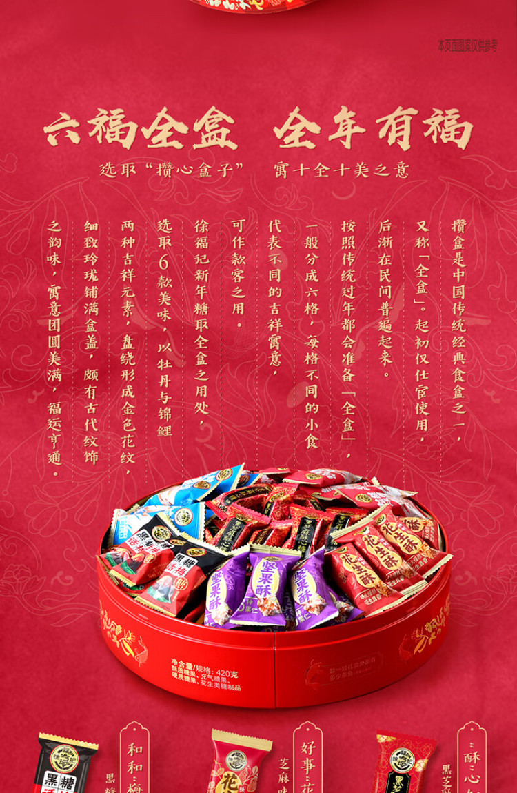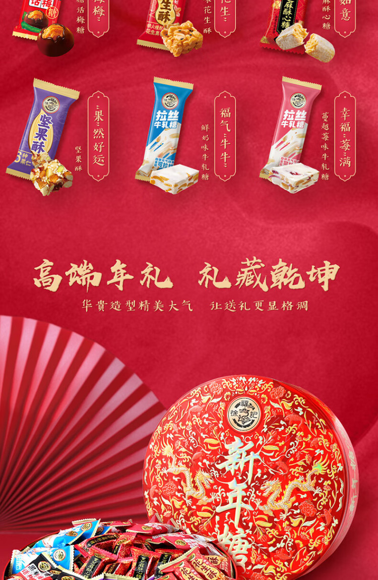 "原味花生酥 黑芝麻酥心糖 坚果酥 黑糖话梅糖 鲜奶味牛轧糖 蔓越莓味牛轧糖"