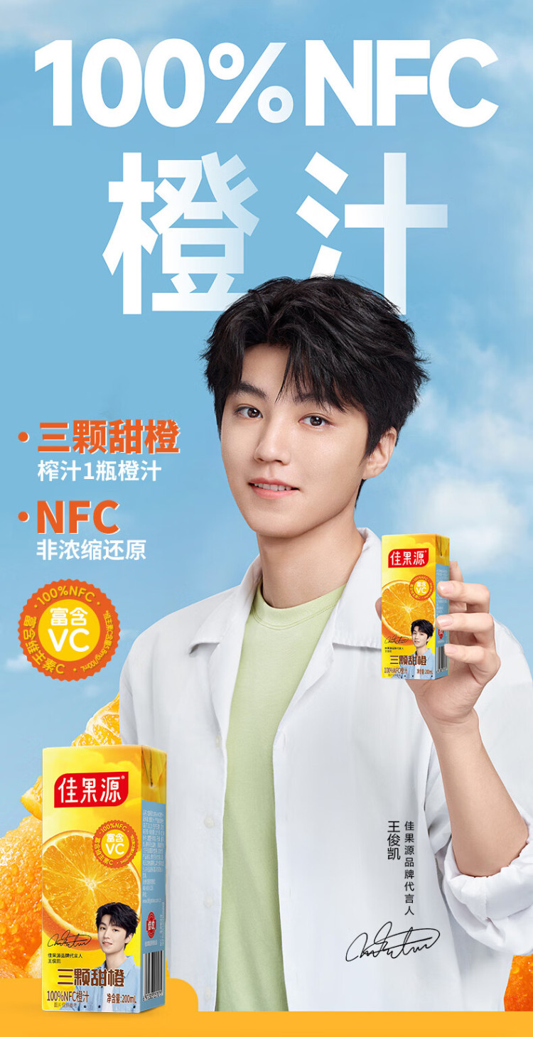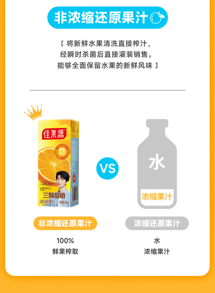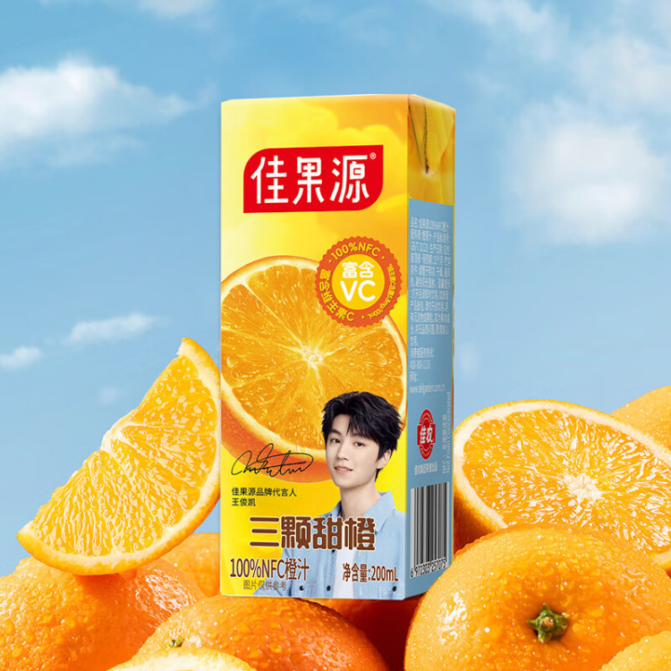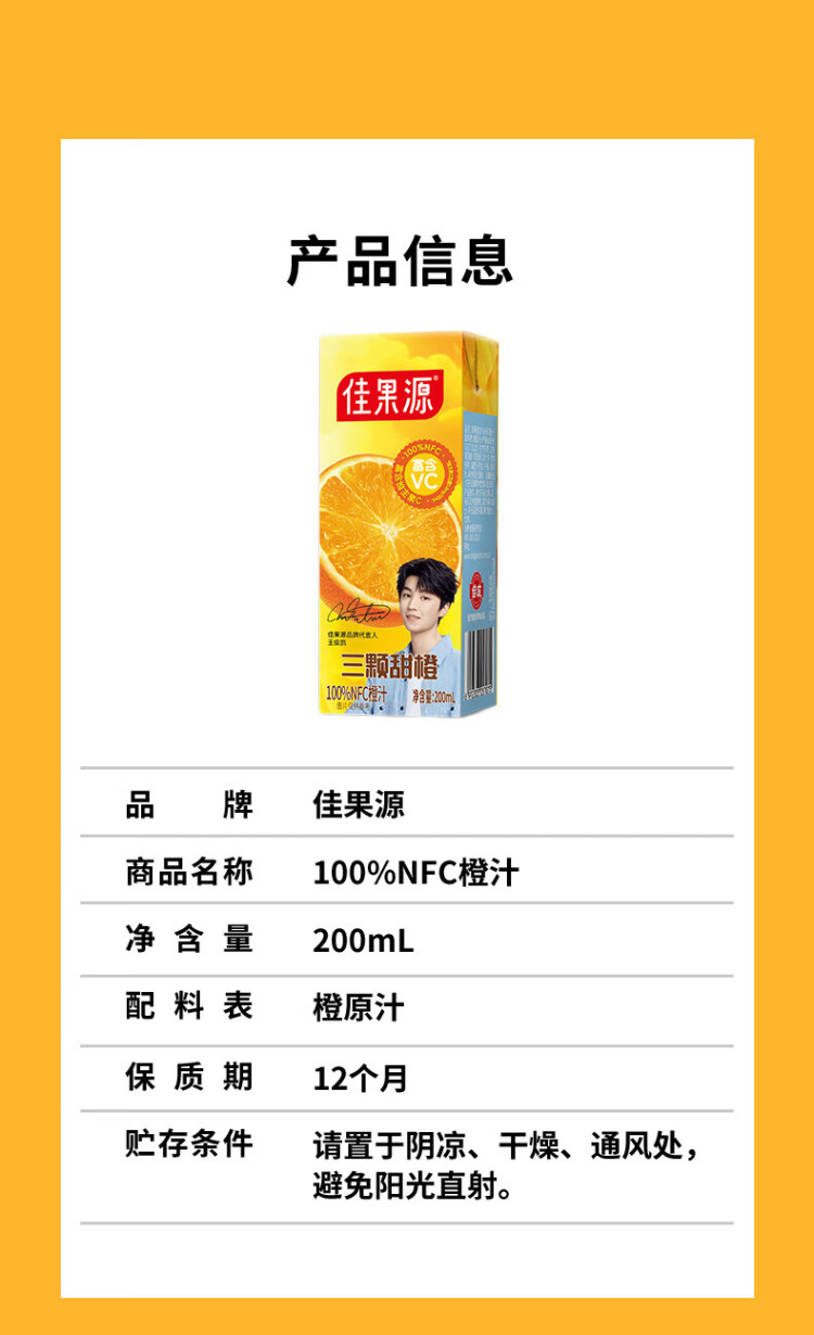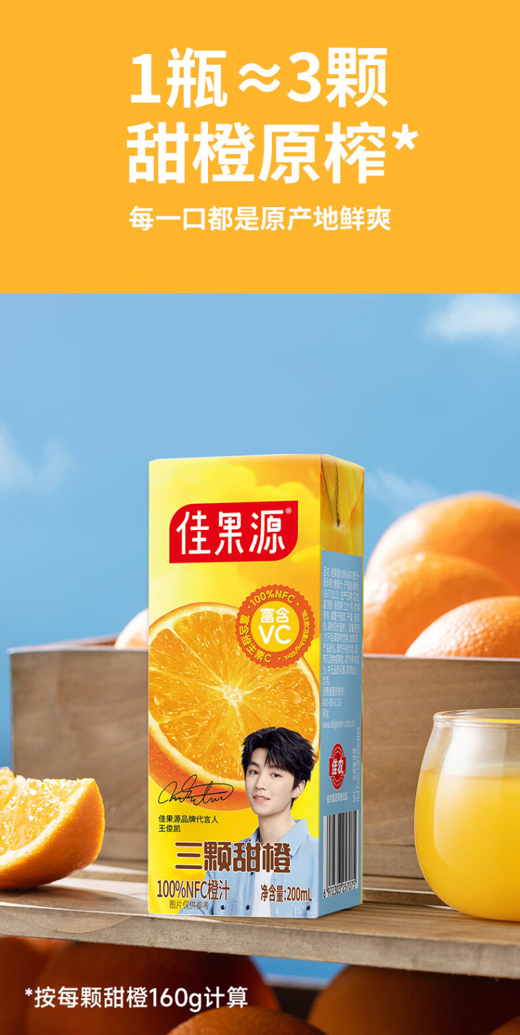 佳果源三颗甜橙100%NFC橙汁200ml*10礼盒装