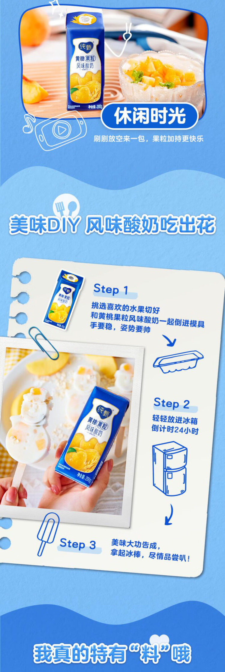 蒙牛纯甄风味酸牛乳黄桃燕麦味康美笑脸包 200g*10