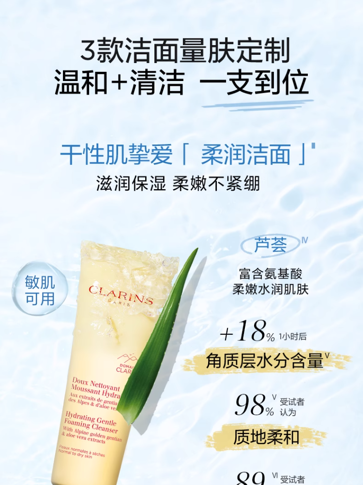 娇韵诗柔润泡沫洁面乳 125ML(干性肌适用)