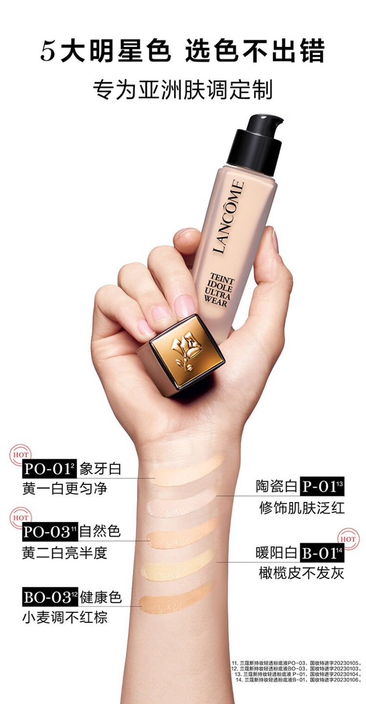 兰蔻持妆粉底液P0-01 30ML 象牙白 黄一白
