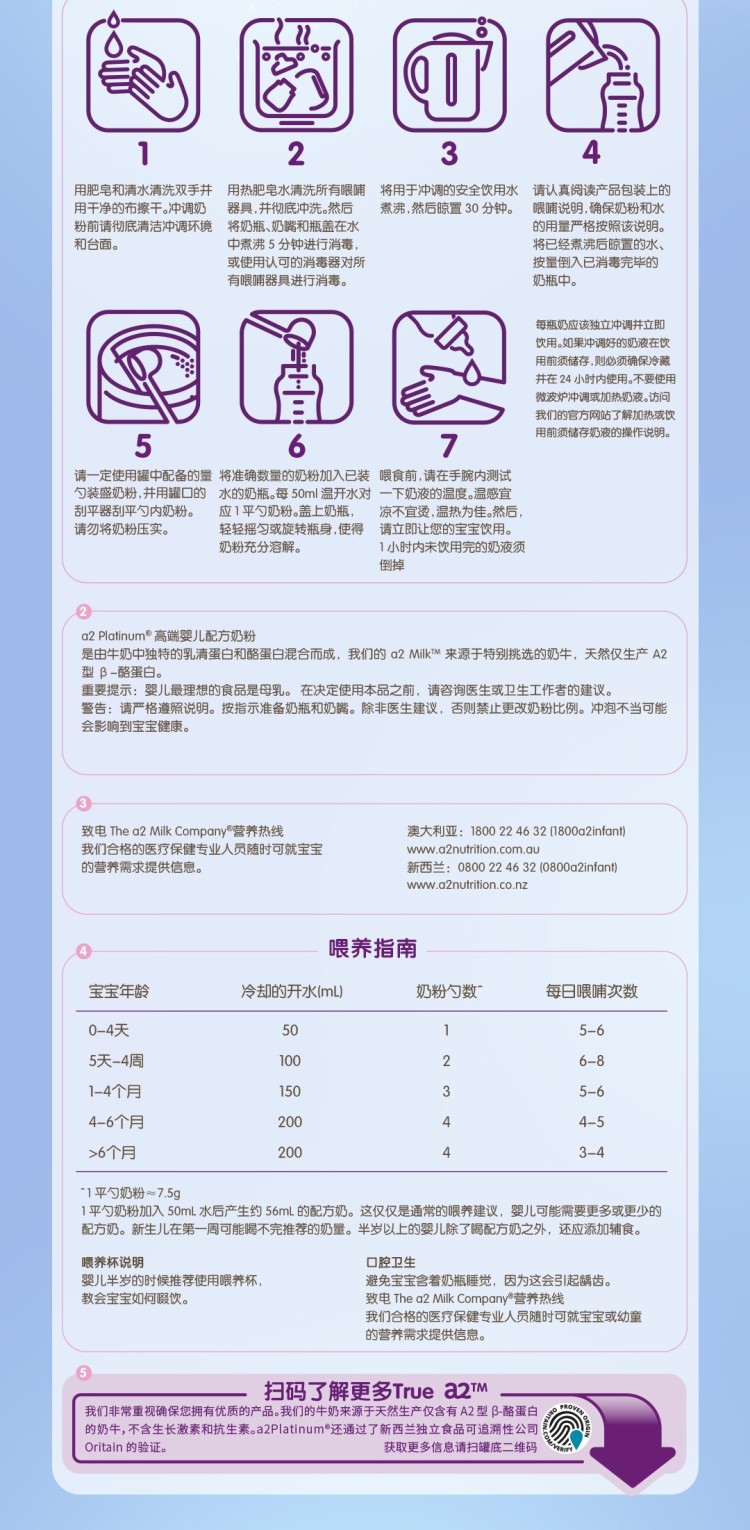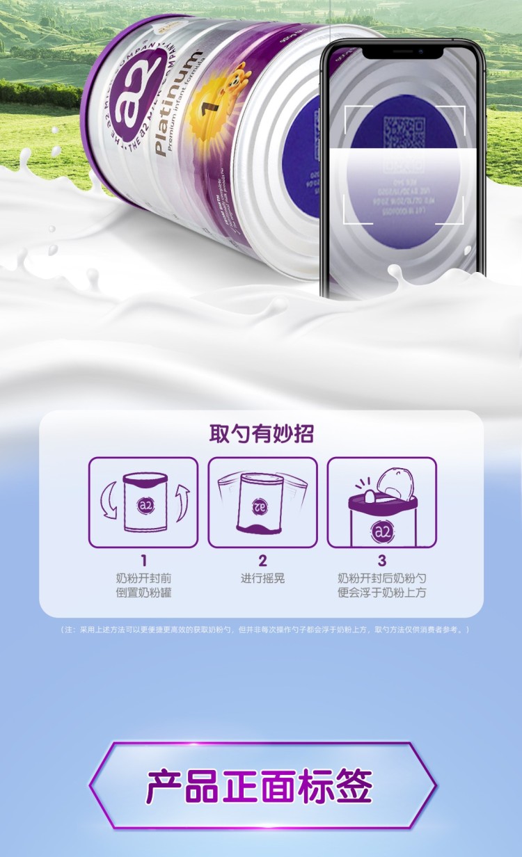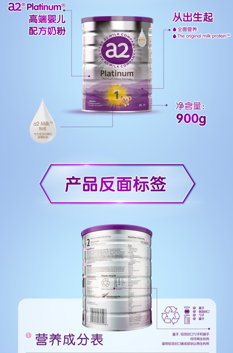 澳洲a2紫白金版婴幼儿奶粉1段 900g 900g/罐
