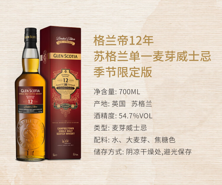 格兰帝12年苏格兰单一麦芽威士忌季节限定版700ml(54.7%)