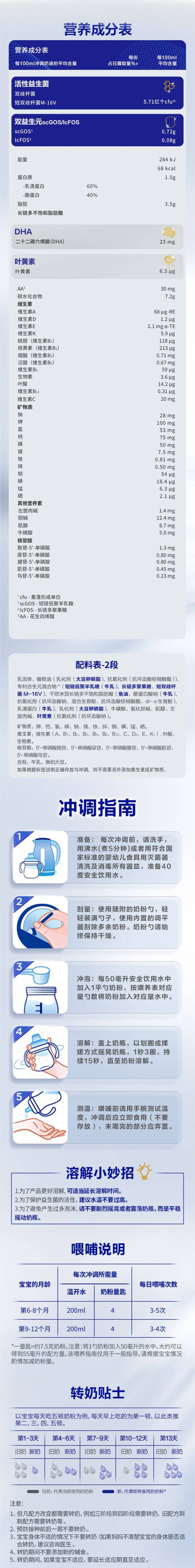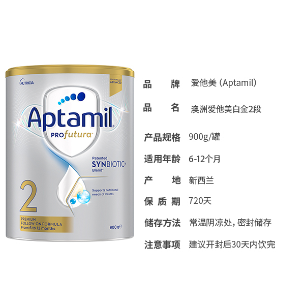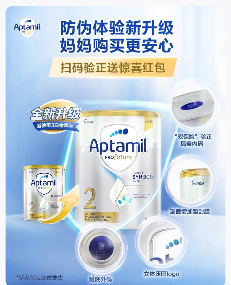 爱他美Aptamil澳洲白金版较大婴儿配方奶粉 2段 6-12月龄 900g