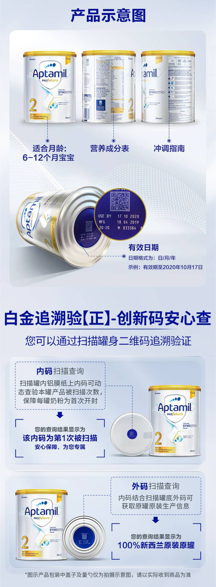 爱他美Aptamil澳洲白金版较大婴儿配方奶粉 2段 6-12月龄 900g 900G/罐