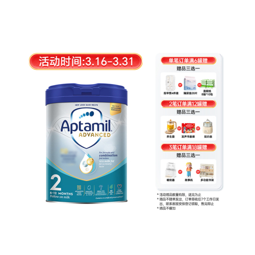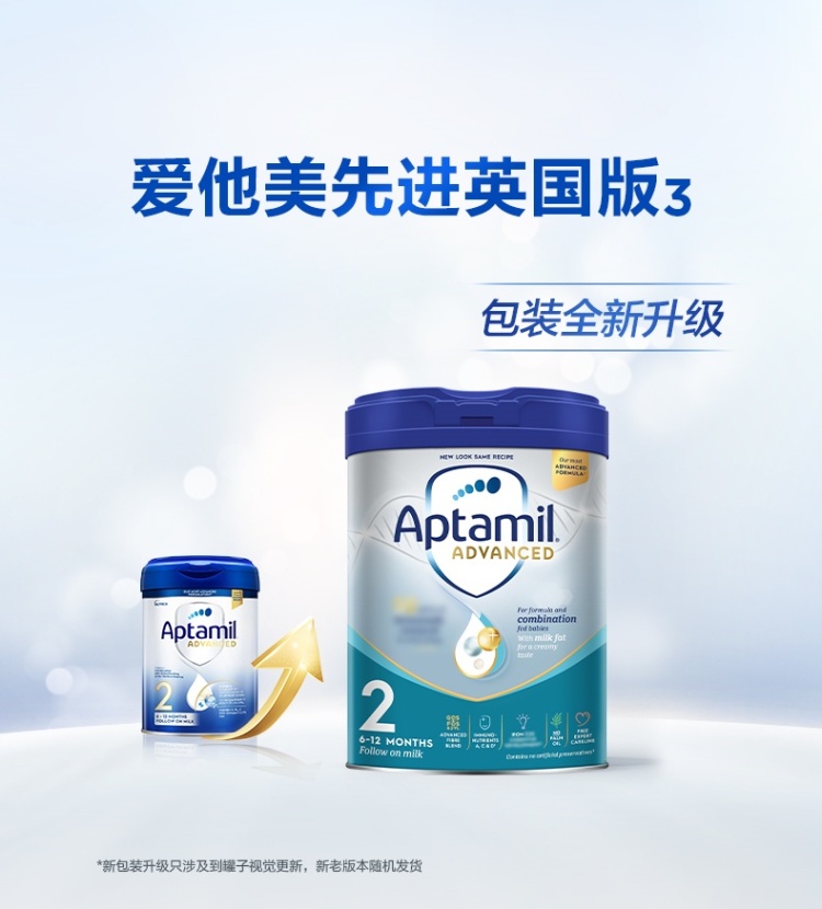 爱他美Aptamil英国白金版较大婴儿配方奶粉 2段 6-12个月 800g(新旧包装随机发货) 800G/罐