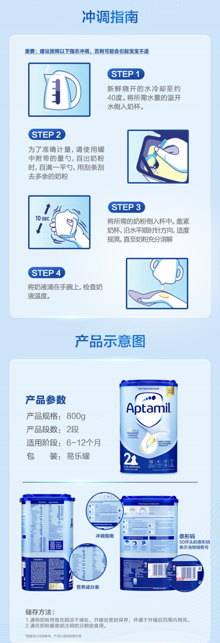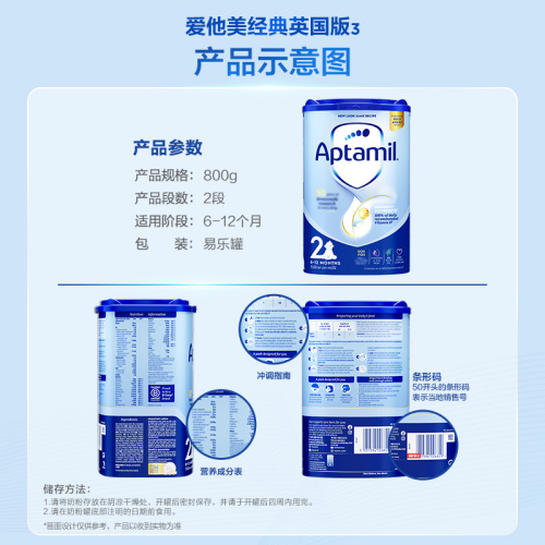 【预售】爱他美Aptamil英国经典版较大婴儿配方奶粉易乐罐 2段 6-12月龄 800g(预计3.31发货)