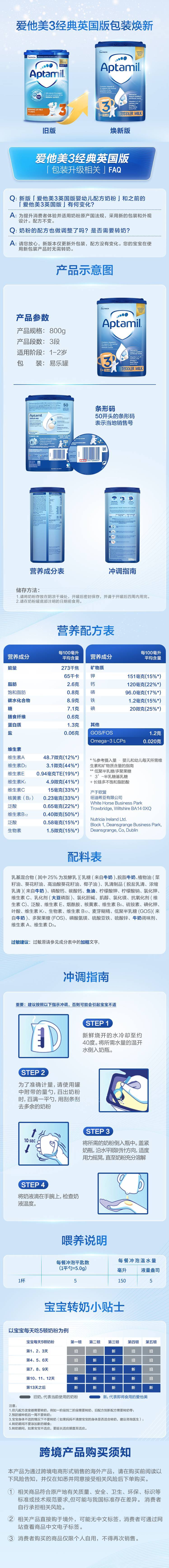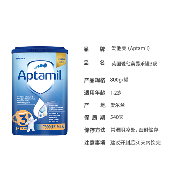 【预售】爱他美Aptamil英国经典版幼儿配方奶粉易乐罐 3段 1-2周岁 800g(预计3.31发货) 800G/罐