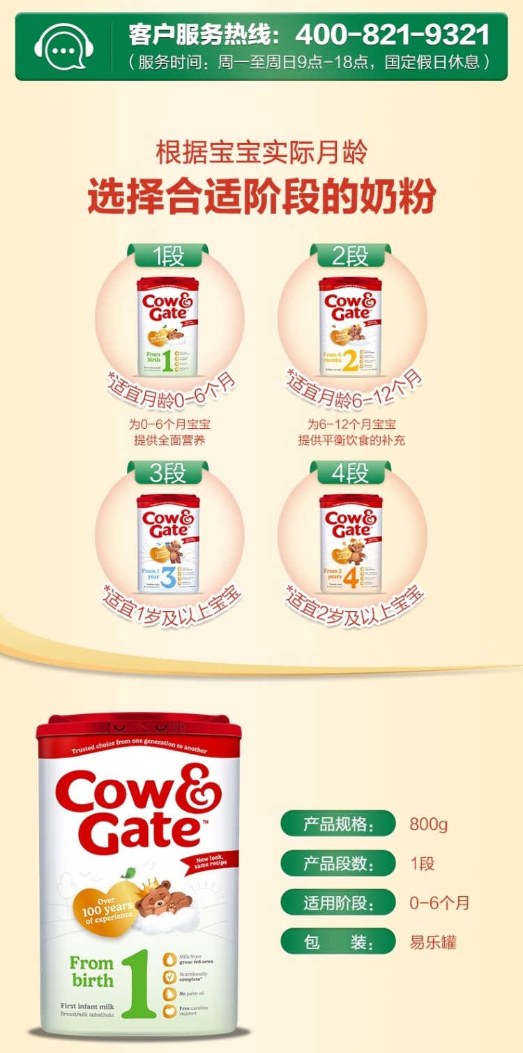 【预售】英国牛栏1段婴幼儿配方奶粉易乐罐 0-6个月龄 800g(新旧包装随机发货)(预计3.31发货)