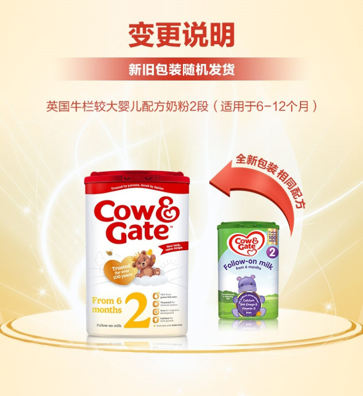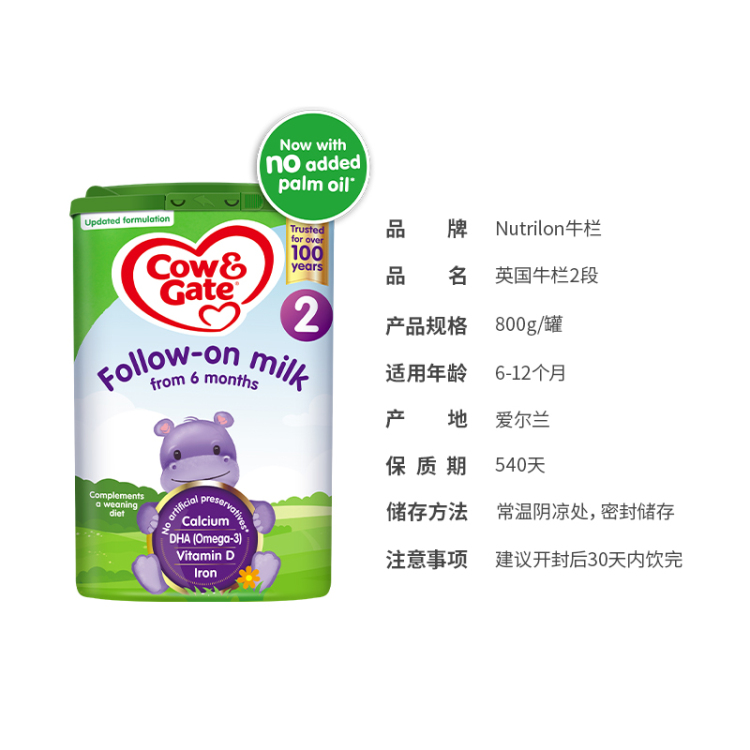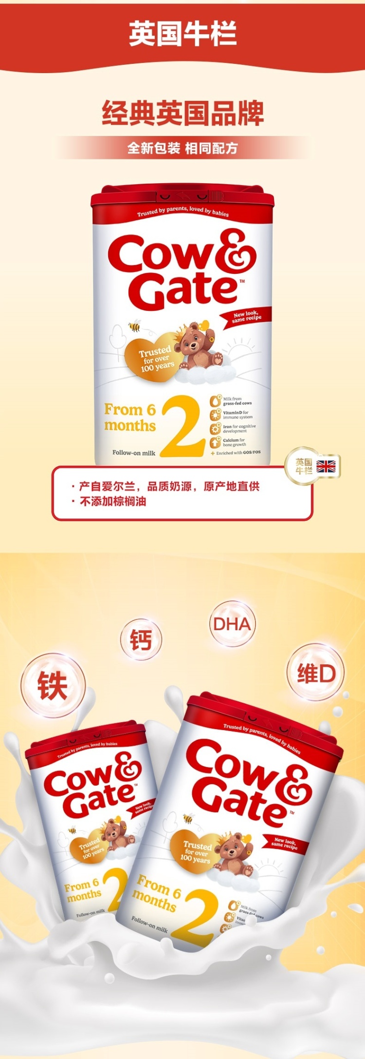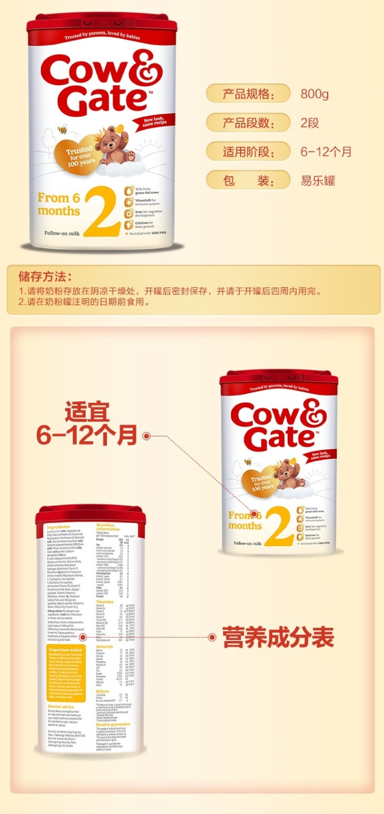 【预售】英国牛栏2段较大婴幼儿配方奶粉易乐罐 6-12个月龄 800g(新旧包装随机发货)(预计3.31发货)