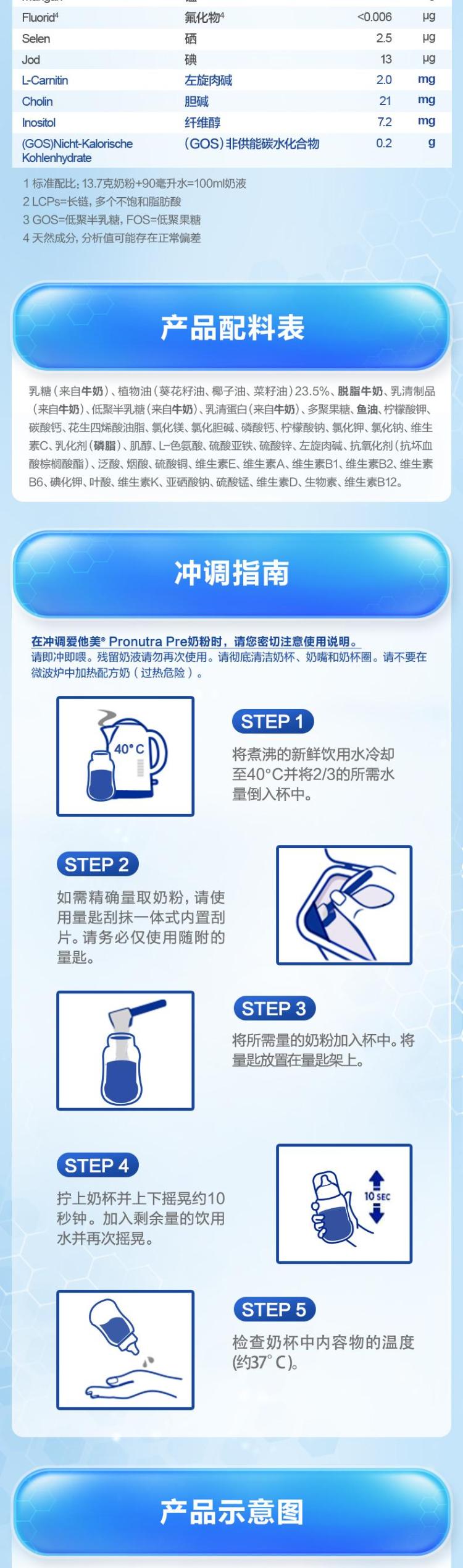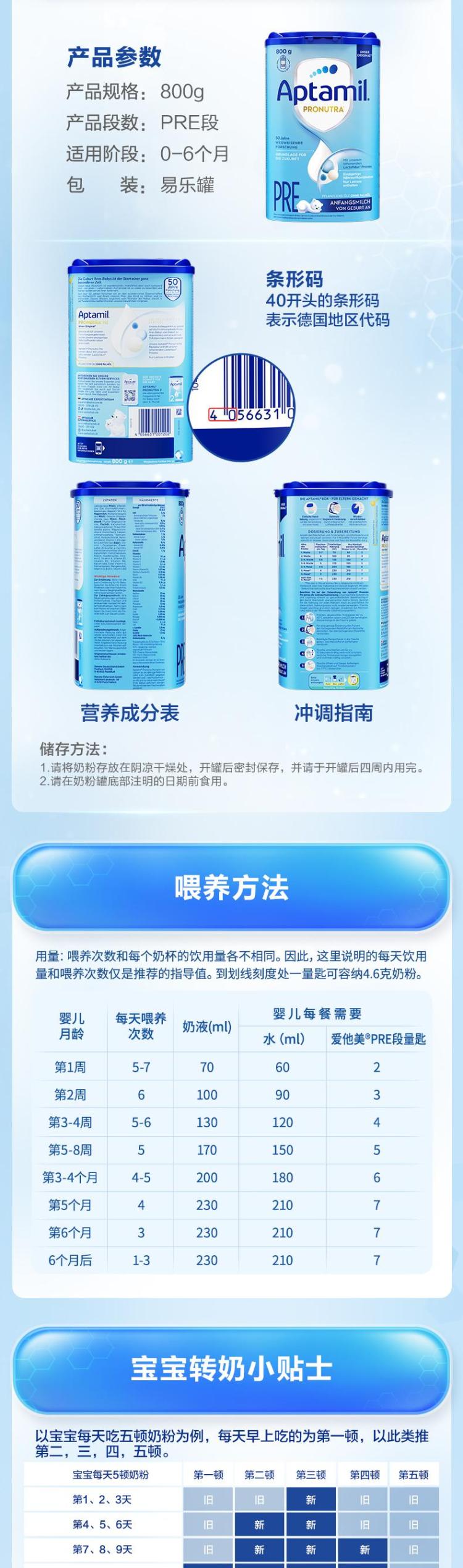 爱他美Aptamil德国经典版婴儿配方奶粉易乐罐Pre段(0-6月龄)800g 800G/罐
