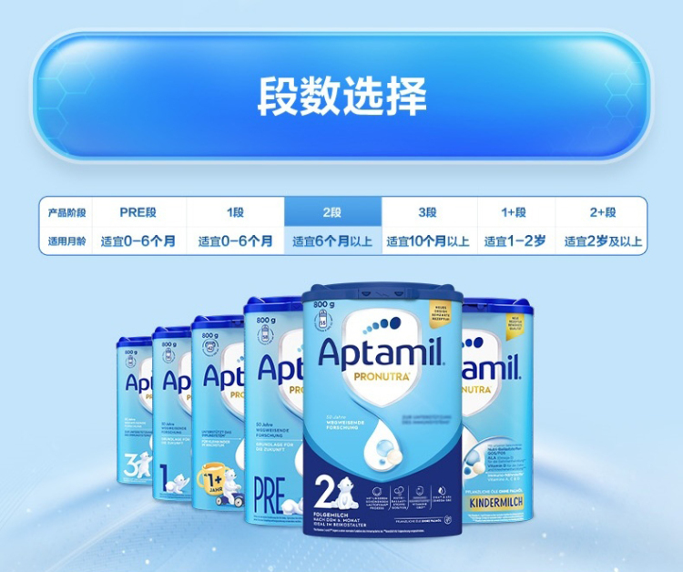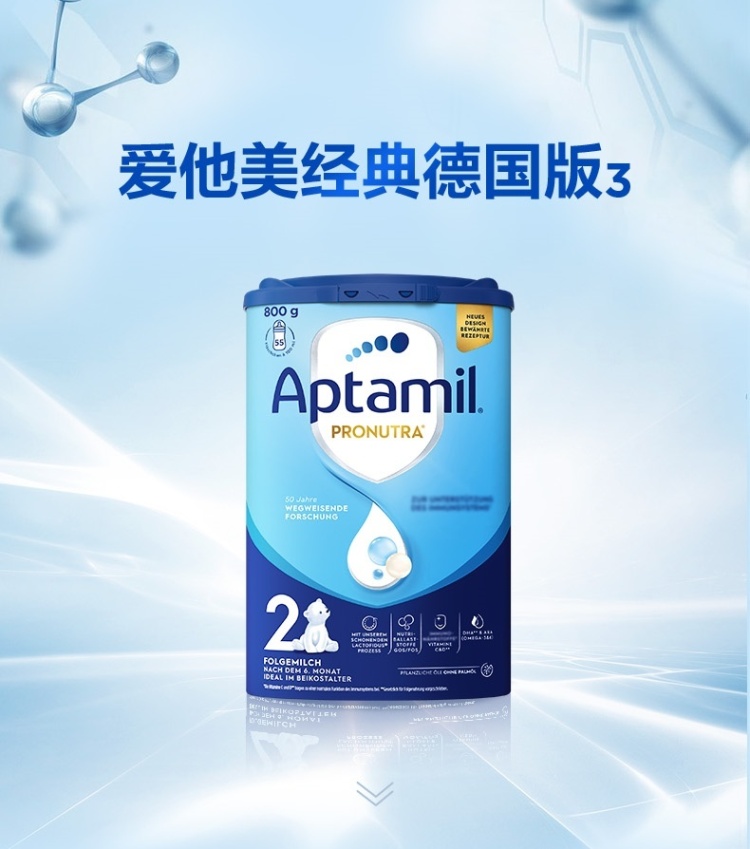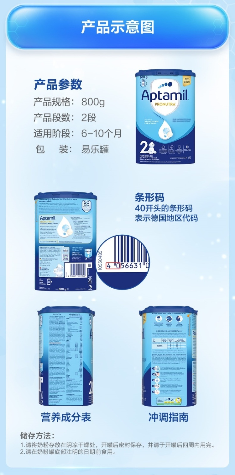 爱他美Aptamil德国经典版较大婴儿配方奶粉易乐罐2段(6-10月龄) 800g(有效期至2026/8/1)