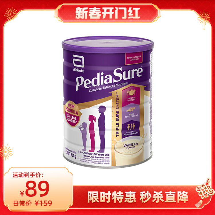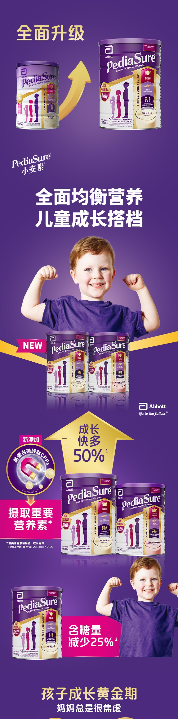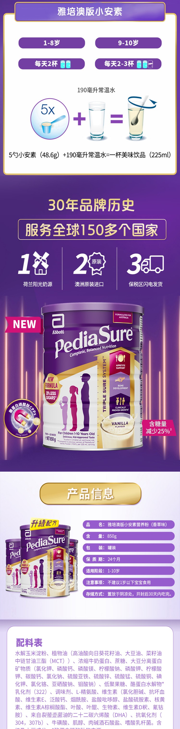 雅培ABBOTT澳洲Pediasure小安素全营养配方奶粉香草味 850g(有效期至2026/6/1) 850g/罐
