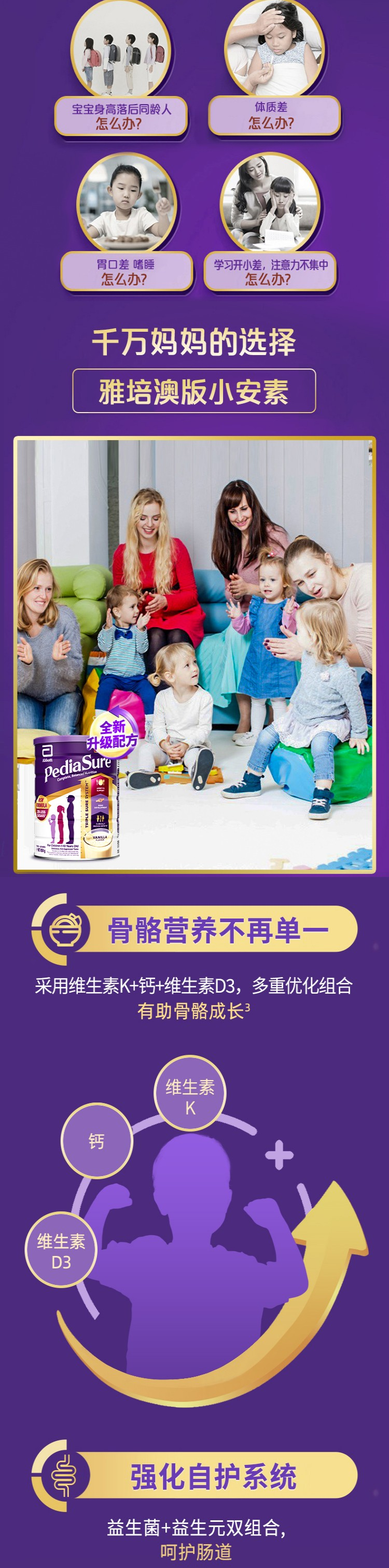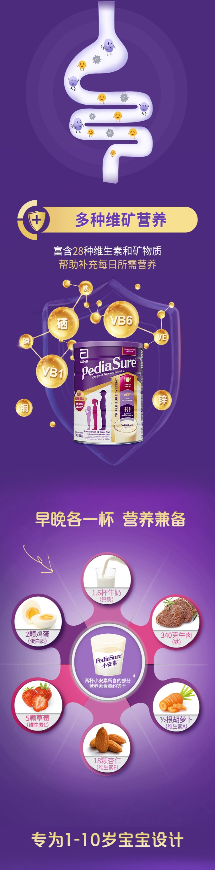 雅培ABBOTT澳洲Pediasure小安素全营养配方奶粉香草味 850g(有效期至2026/6/1)