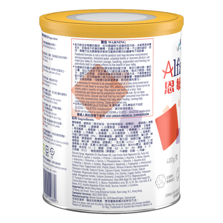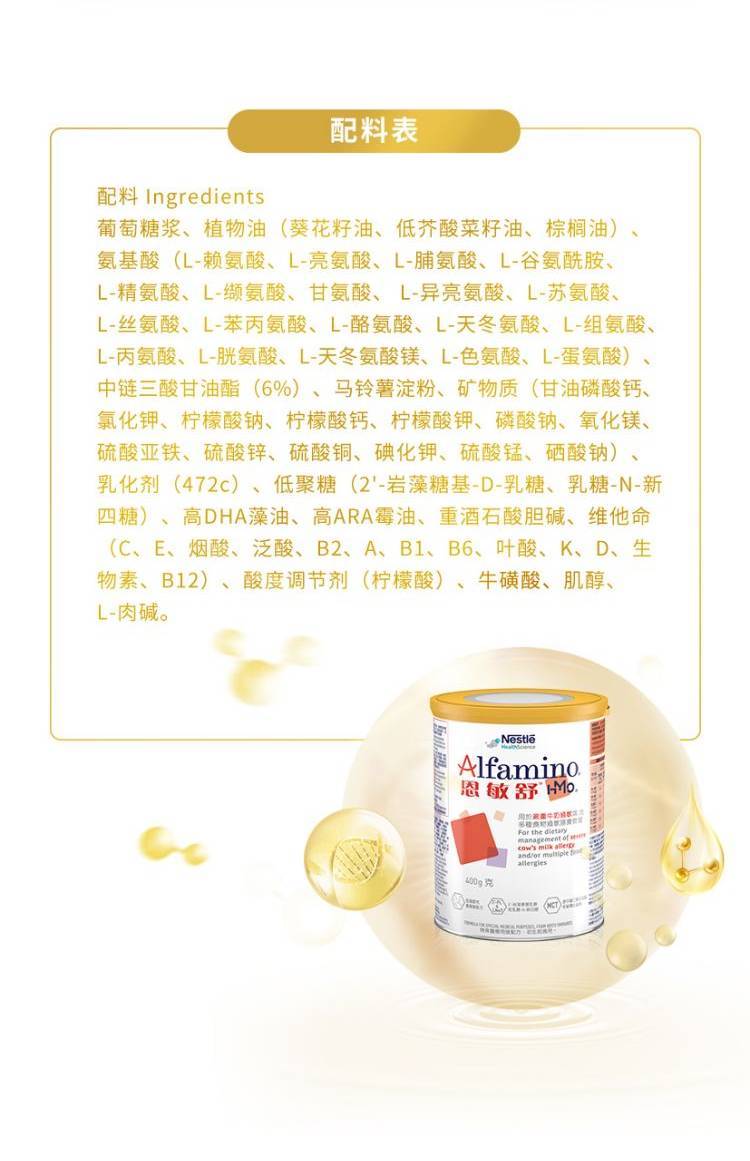 雀巢Nestle恩敏舒HMO氨基酸配方奶粉 0-1岁400g(有效期至2026/9/1)
