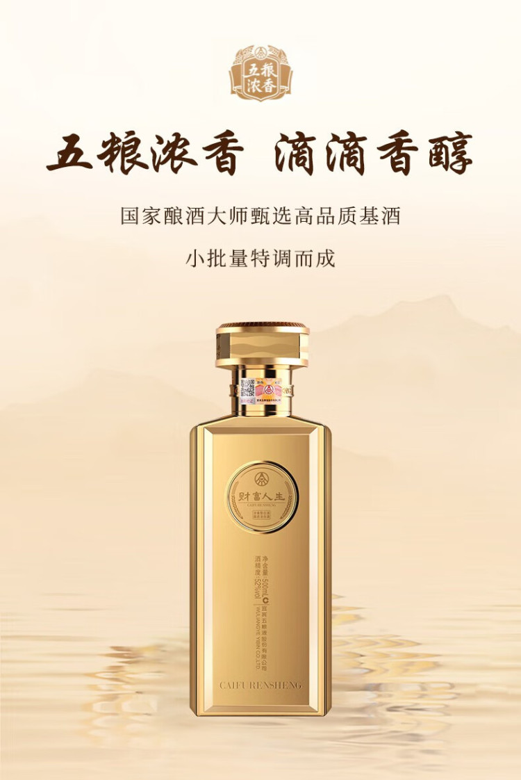 五粮液股份财富人生金砖52度浓香型白酒500ml
