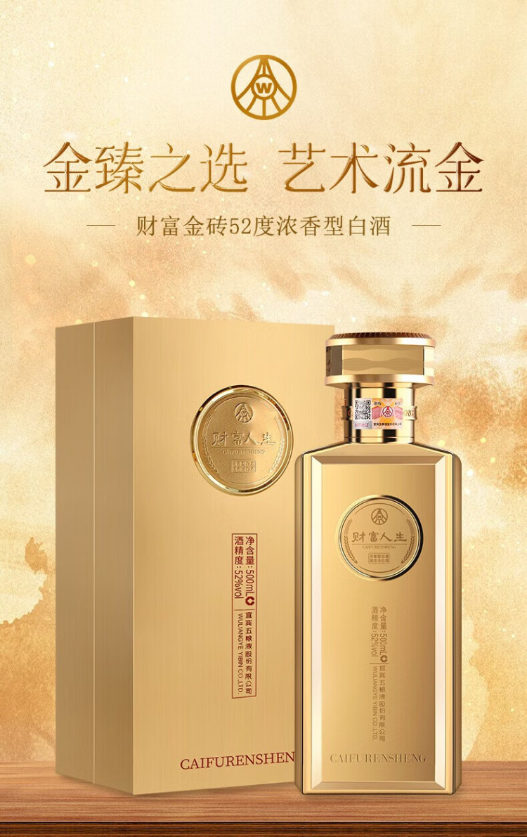 五粮液股份财富人生金砖52度浓香型白酒500ml*6瓶 500ml*6瓶