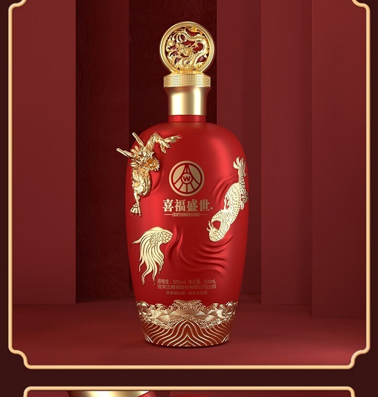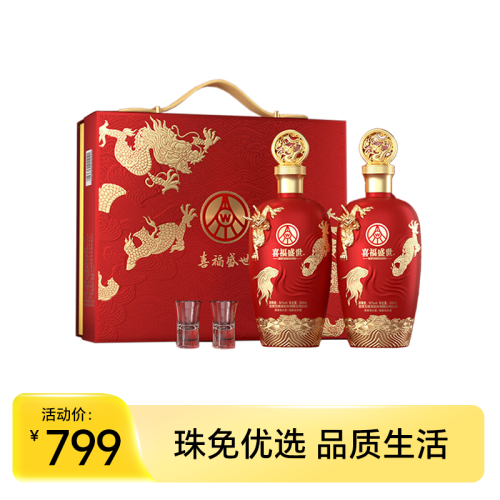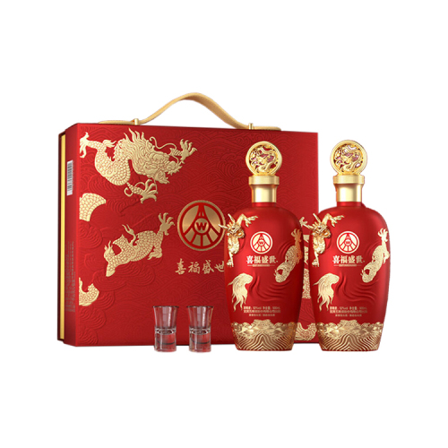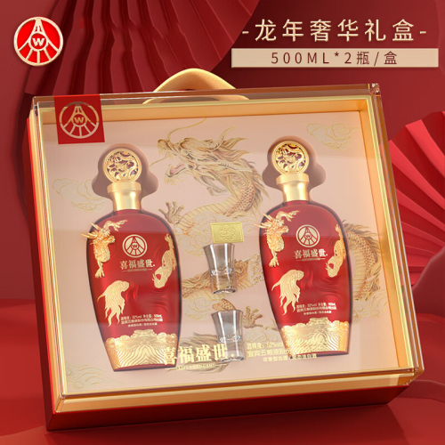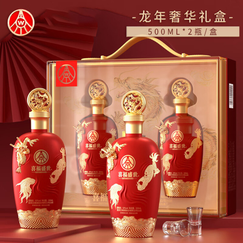 五粮液52度喜福盛世龙行大运浓香型白酒500ml*2瓶/礼盒(配礼袋+酒杯*2)
