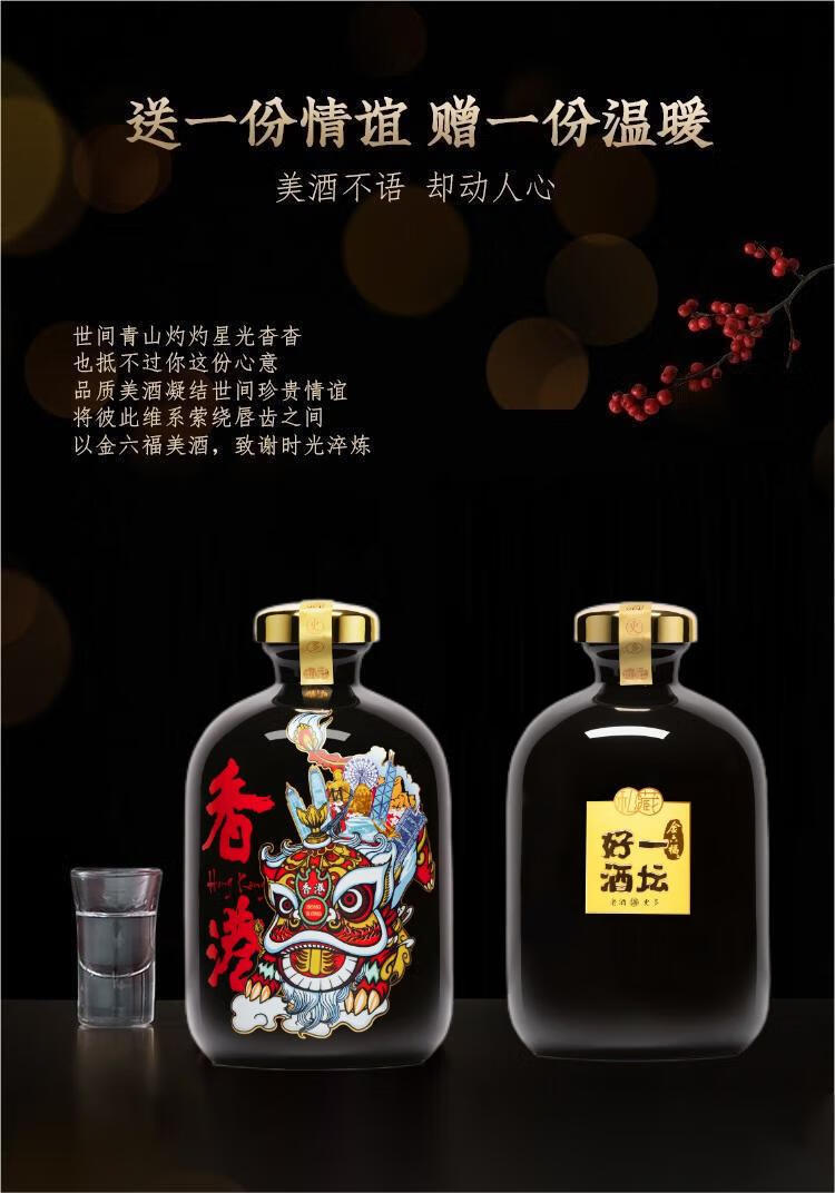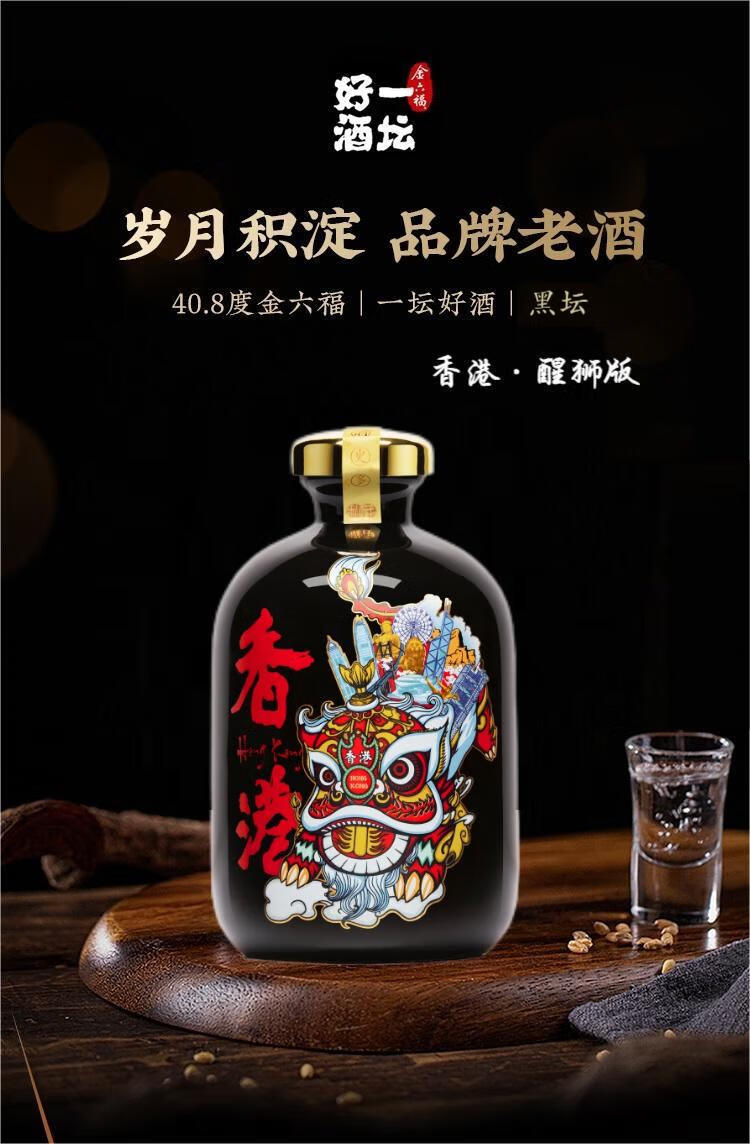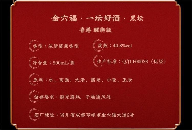 金六福40.8度一坛好酒黑坛醒狮版兼香型白酒500ml【出口版】