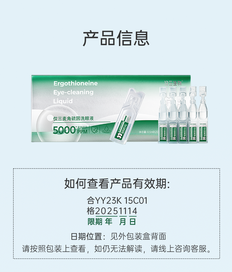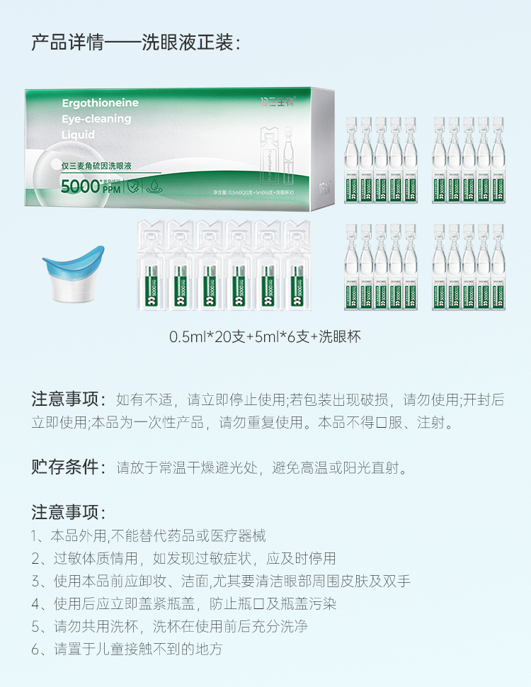 【多规格可选】仅三5000+PPM麦角硫因洗眼液(0.5ml*20支+5ml*6支+洗眼杯*1)