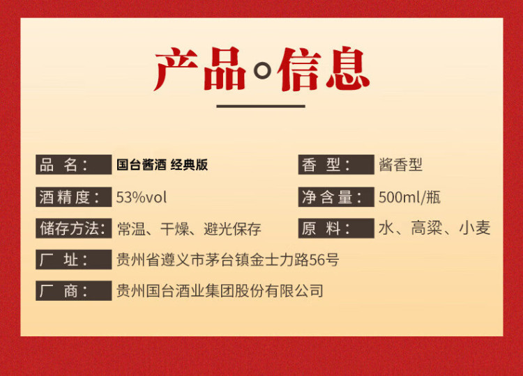 国台53度酱酒经典版酱香型白酒500ml 500ml/瓶