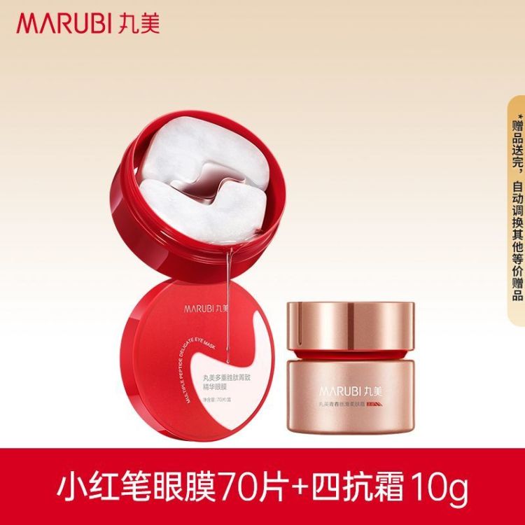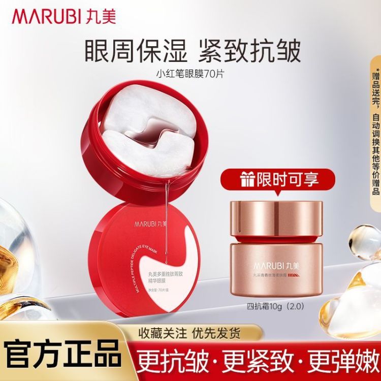 丸美小红笔多肽眼膜贴眼周提亮淡化细纹抗皱提拉紧致眼贴官方正品 小红笔眼膜70片+面霜10g