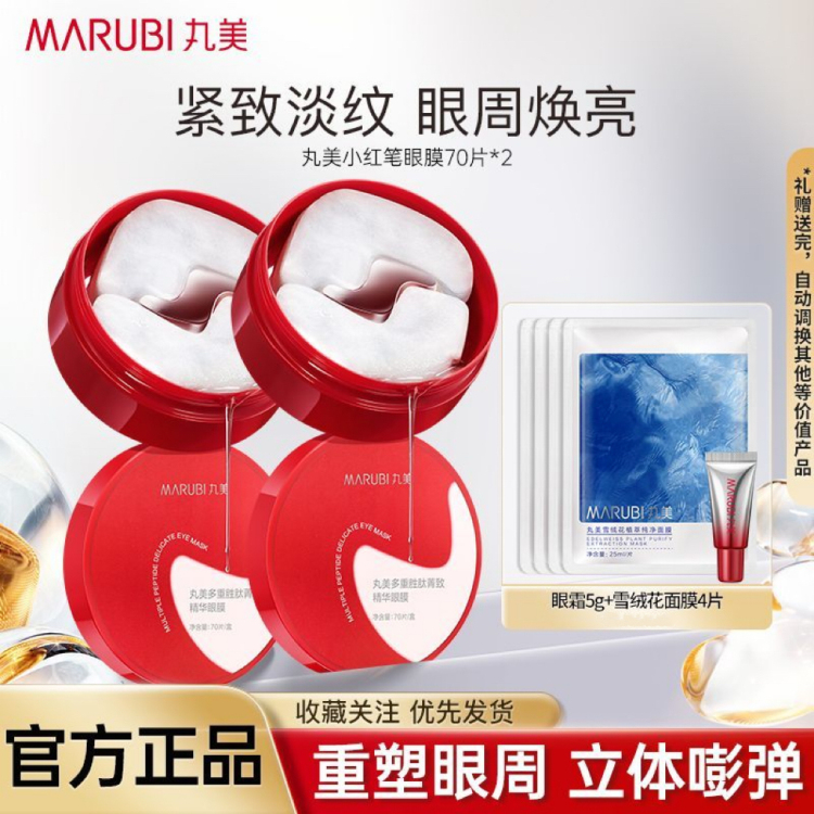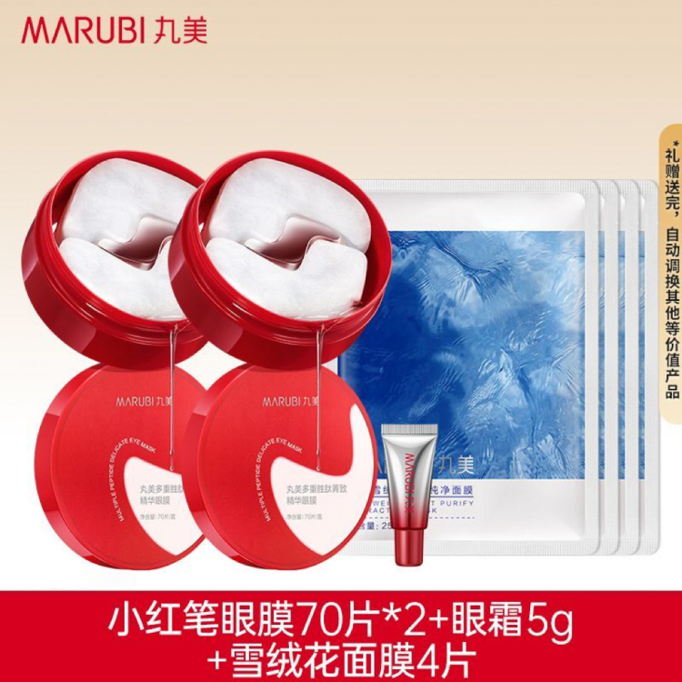 丸美小红笔眼膜多重胜肽眼贴膜抗皱紧致淡化眼细纹眼袋黑眼圈熬夜 小红笔眼霜140片+眼霜5g+雪绒花面膜4片