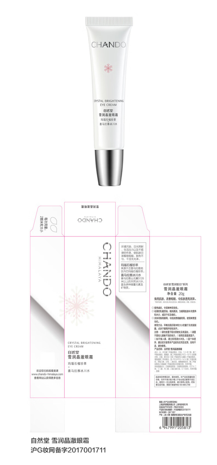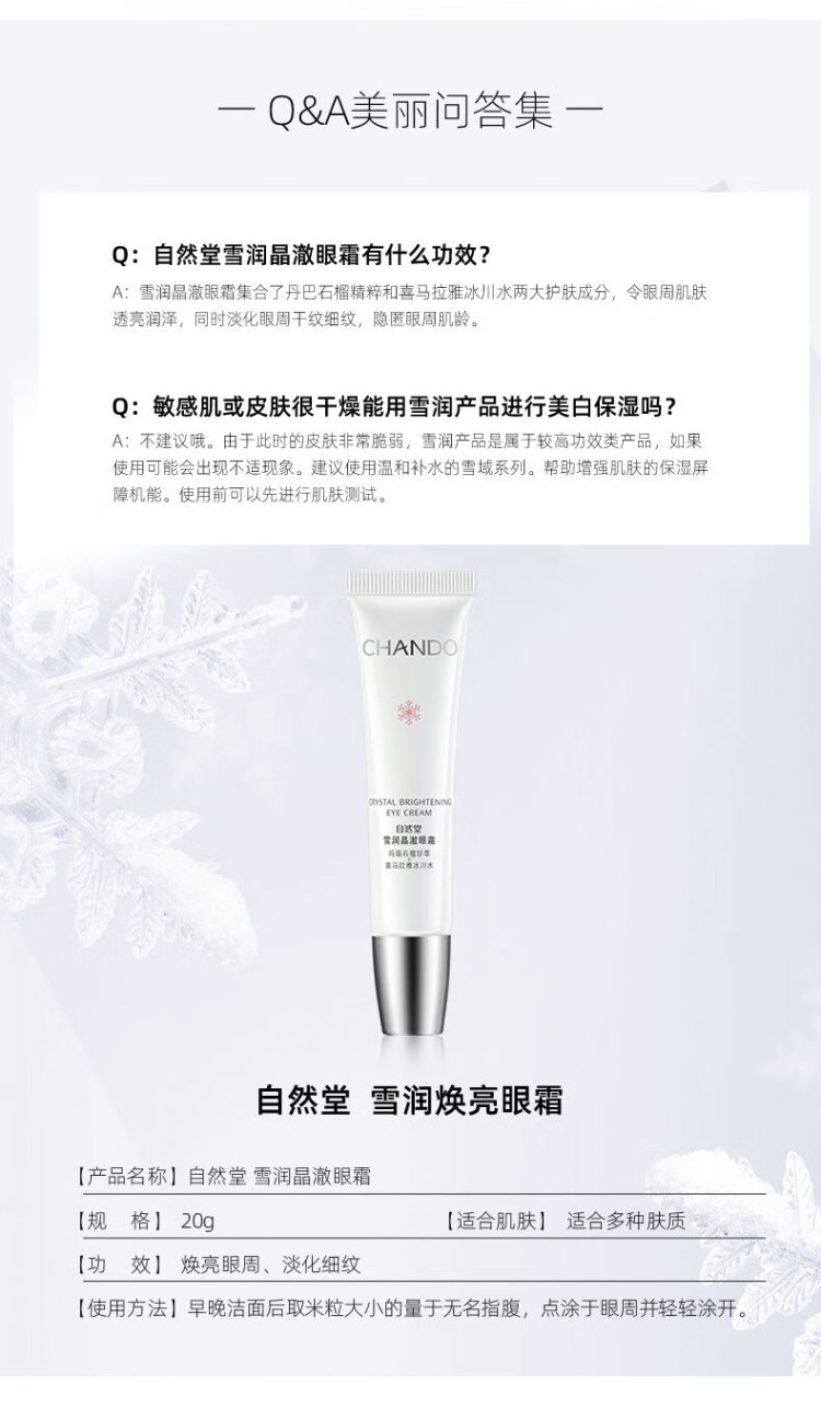 自然堂雪润晶澈眼霜淡化细纹焕亮眼周补水保湿女旗舰店 自然堂雪润晶澈眼霜20g