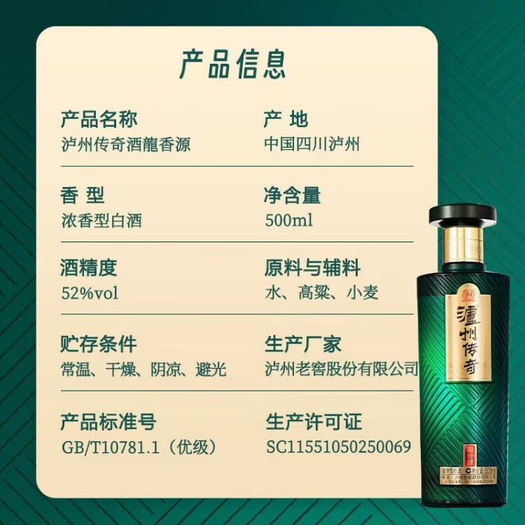 泸州老窖泸州传奇龙香源浓香型白酒500ml*2瓶 500ml*2瓶
