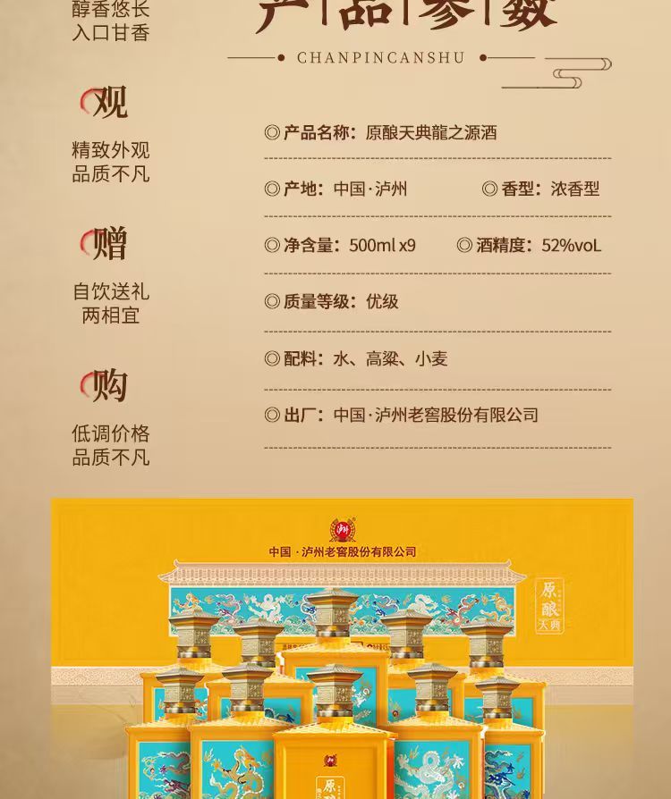 泸州老窖原酿天典九龙壁浓香型白酒500ml*9瓶 500ml*9瓶