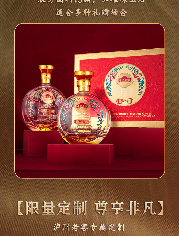 泸州老窖雁塔祈福福运双禧浓香型白酒500ml*2瓶礼盒装