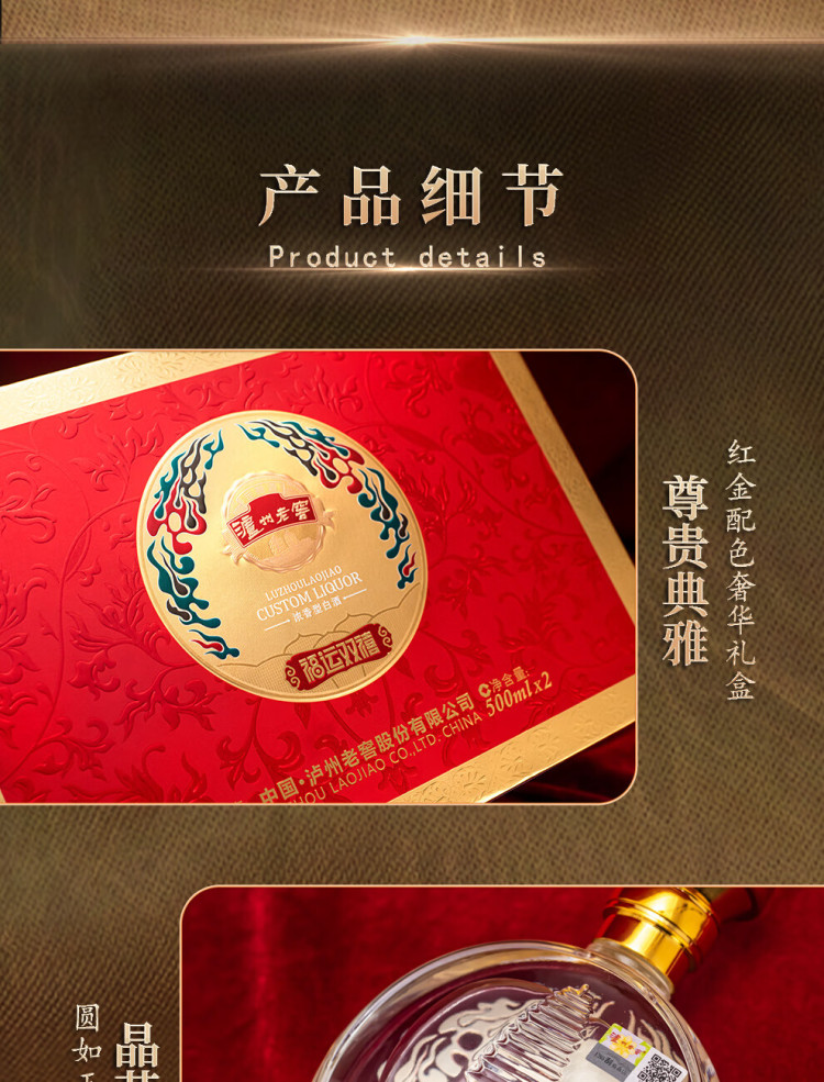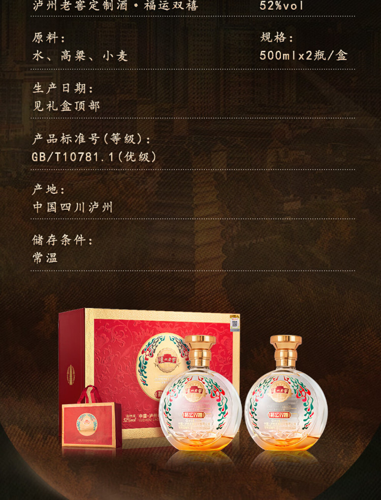 泸州老窖雁塔祈福福运双禧浓香型白酒500ml*2瓶礼盒装 500ml*2瓶礼盒装